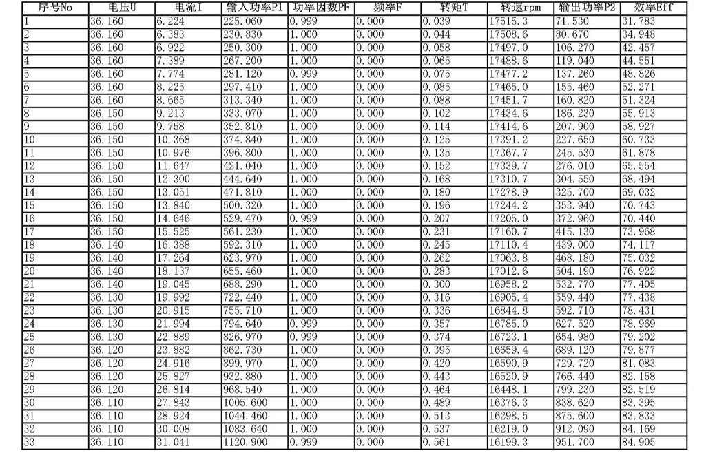 电机性能测试数据报表-(6335-36V)-KYC
