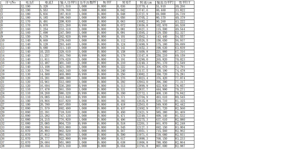 电机性能测试数据报表一(BL7240-56V)KYC